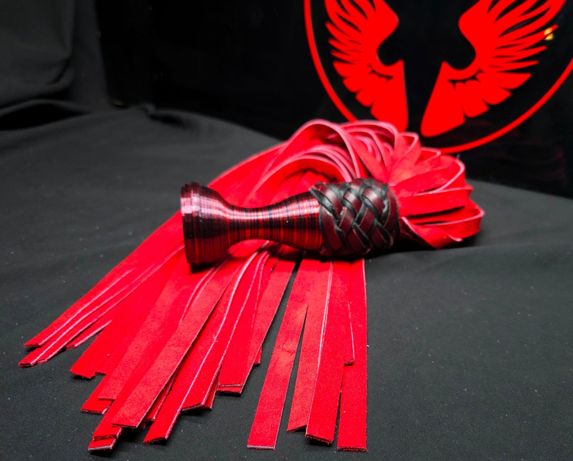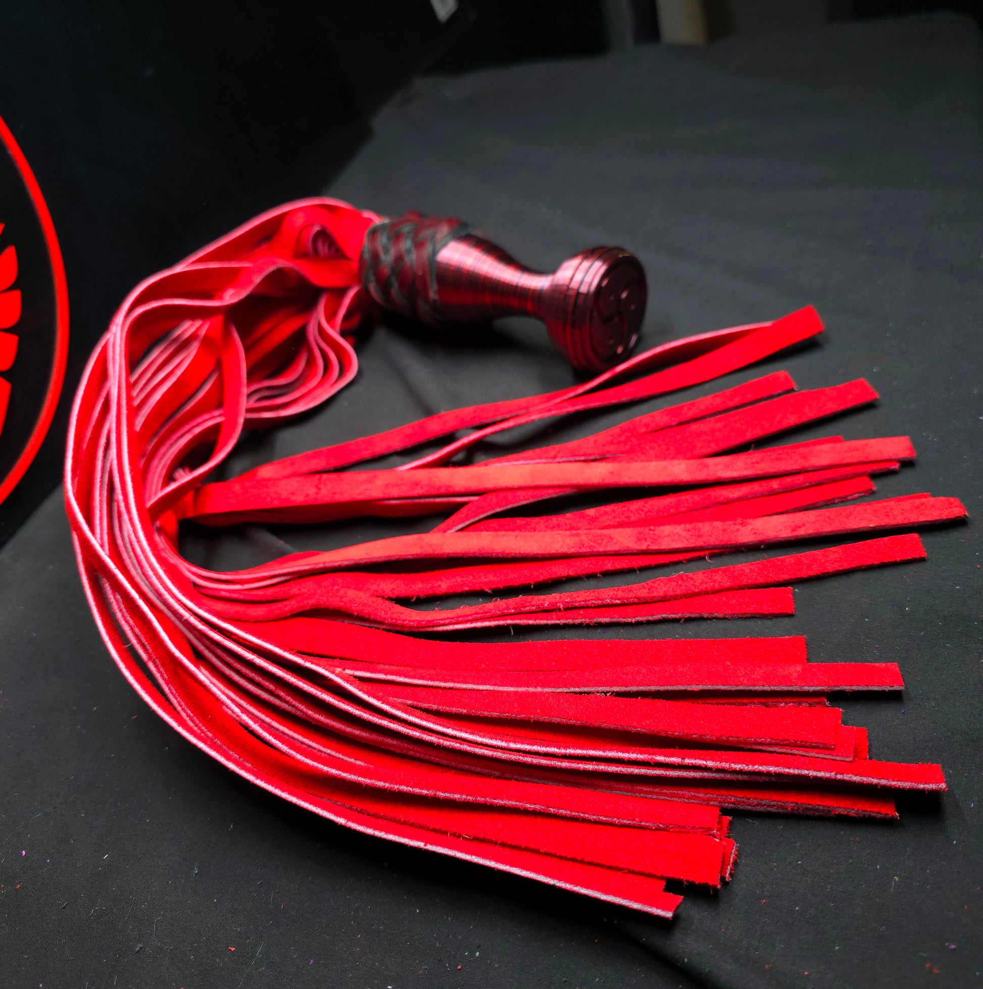 Suede is highly recommended for beginners. It is not too stingy, not too thuddy and very versatile. It is soft and pettable to the touch. Ball handle floggers are great for people who find traditional handles to be a strain on the wrist or joints, but don't like the loose feeling of finger floggers.