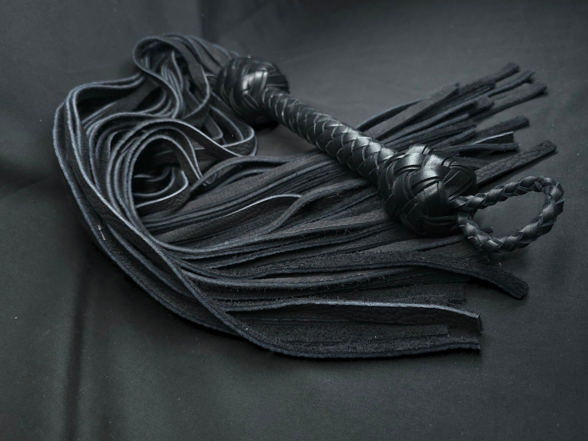 Black Velvet Leather Flogger- Size Large- Extra Thud