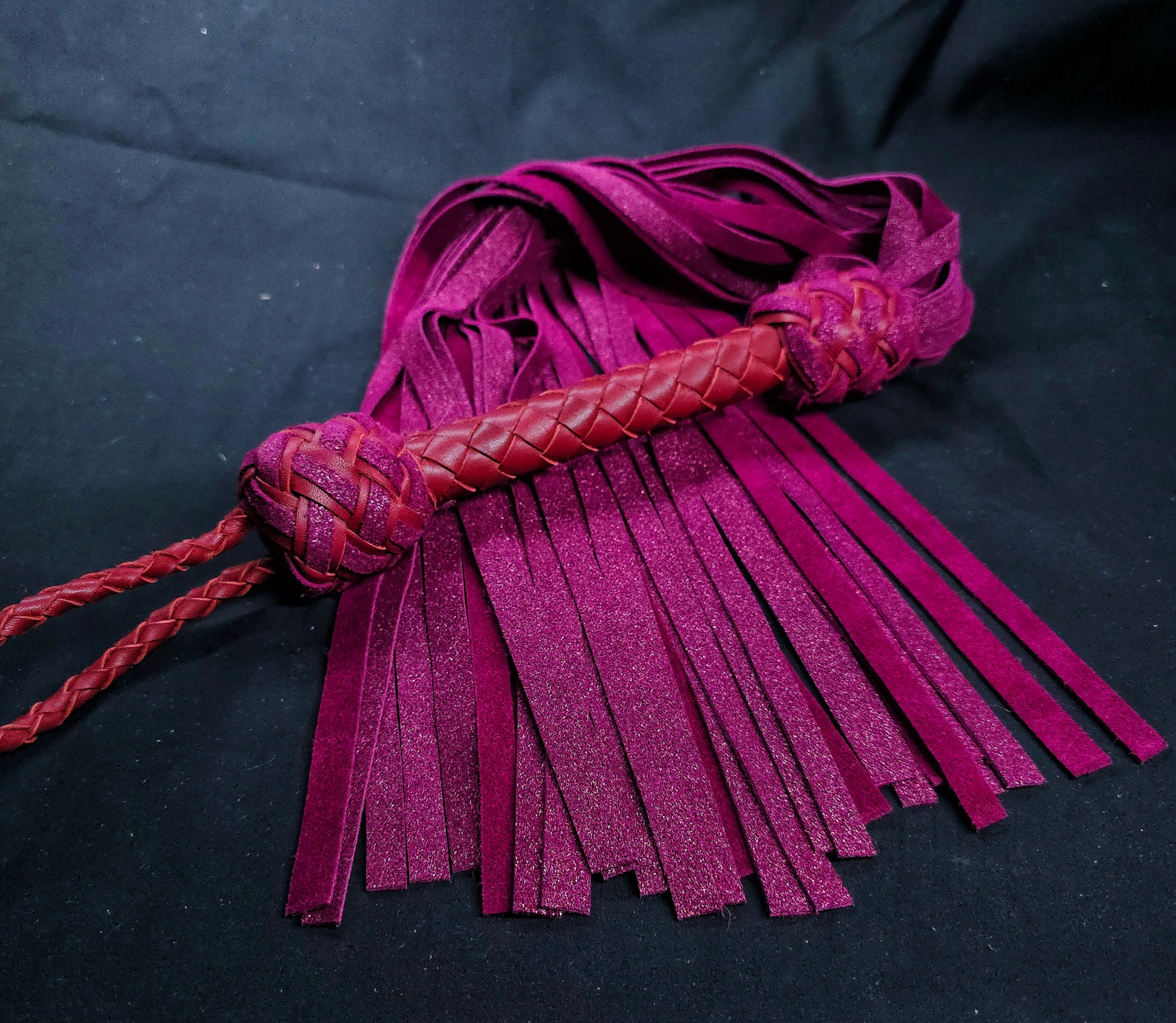 The leather is soft and light. I recommend these for warm ups, sensation play, and light impact play. The handle is 8 inches, the tails are 20 inches.