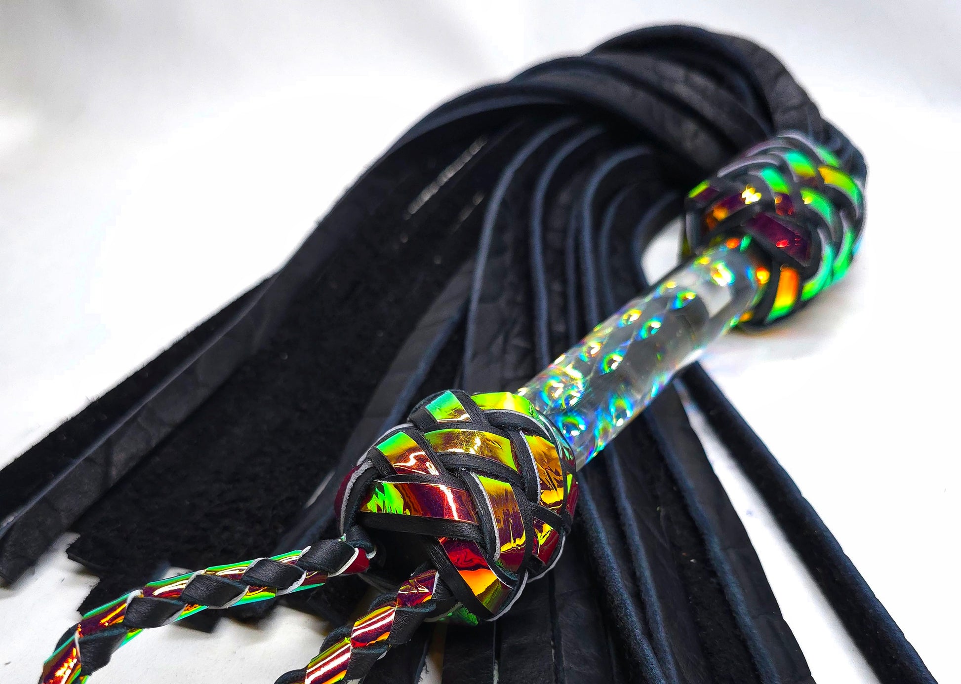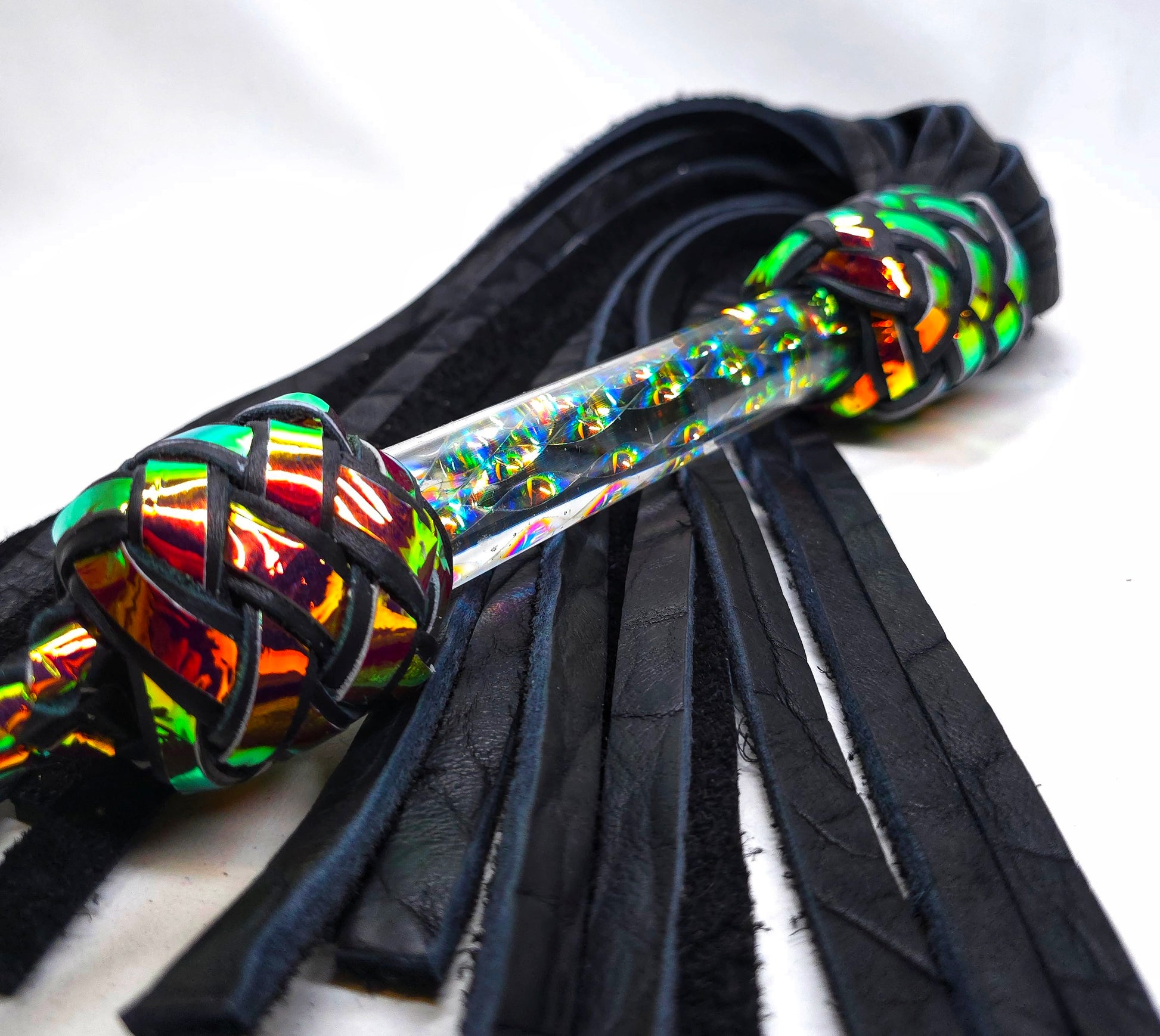 Reflective rainbow tails, trapped rainbow handles, and metallic duochrome knotwork, these babies are stunning!