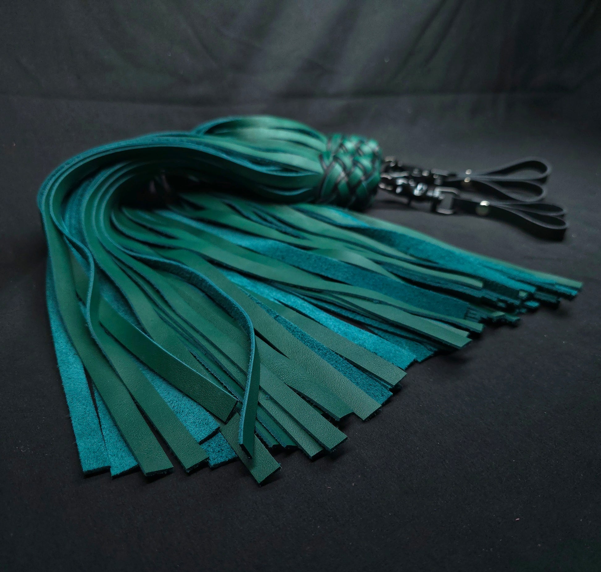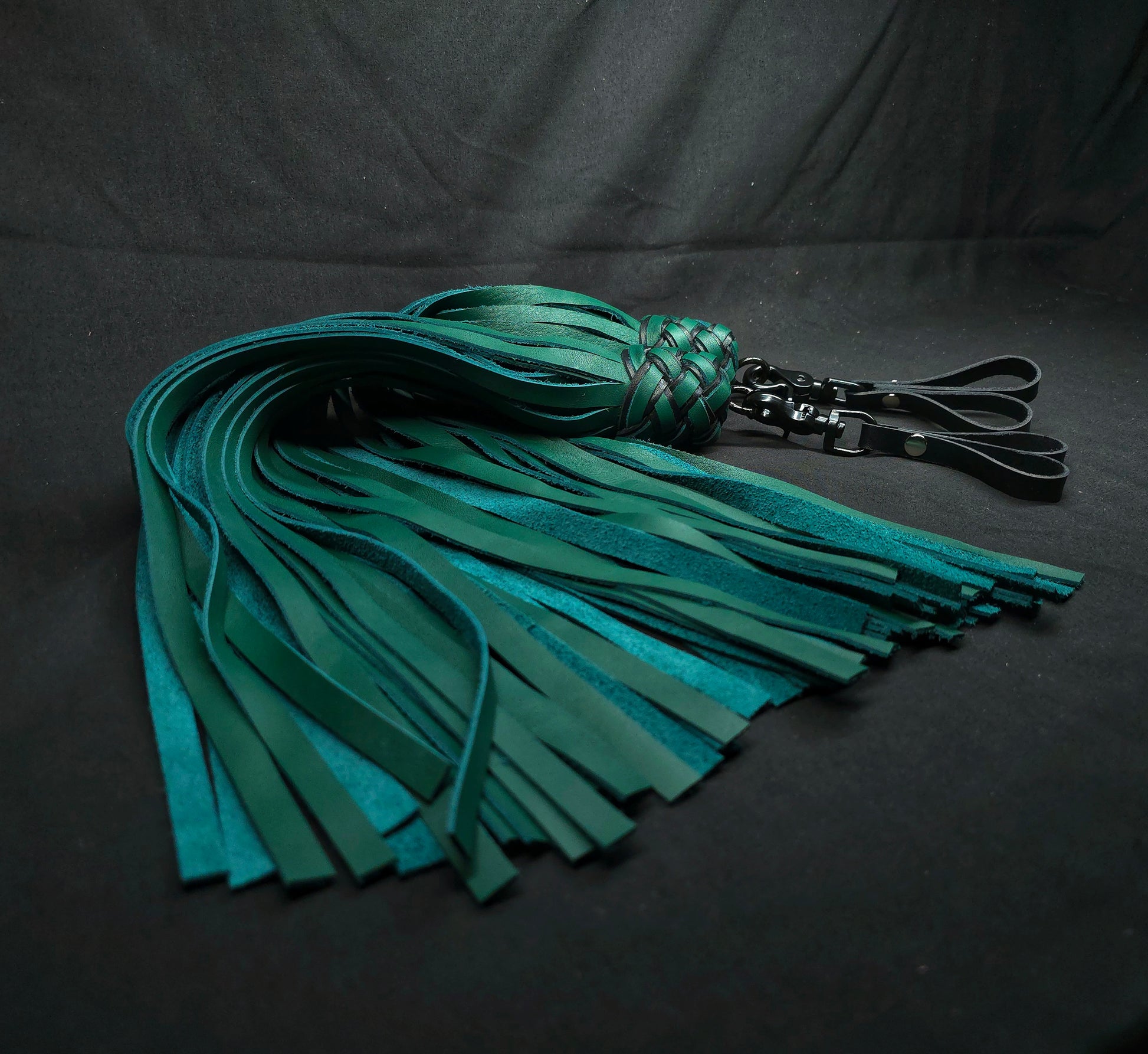 These floggers are made from a lightweight leather with a smooth finish. Finger floggers are great for florentine flogging, or dual wielding, and can be helpful for people with wrist and shoulder injuries aggravated by traditional floggers.