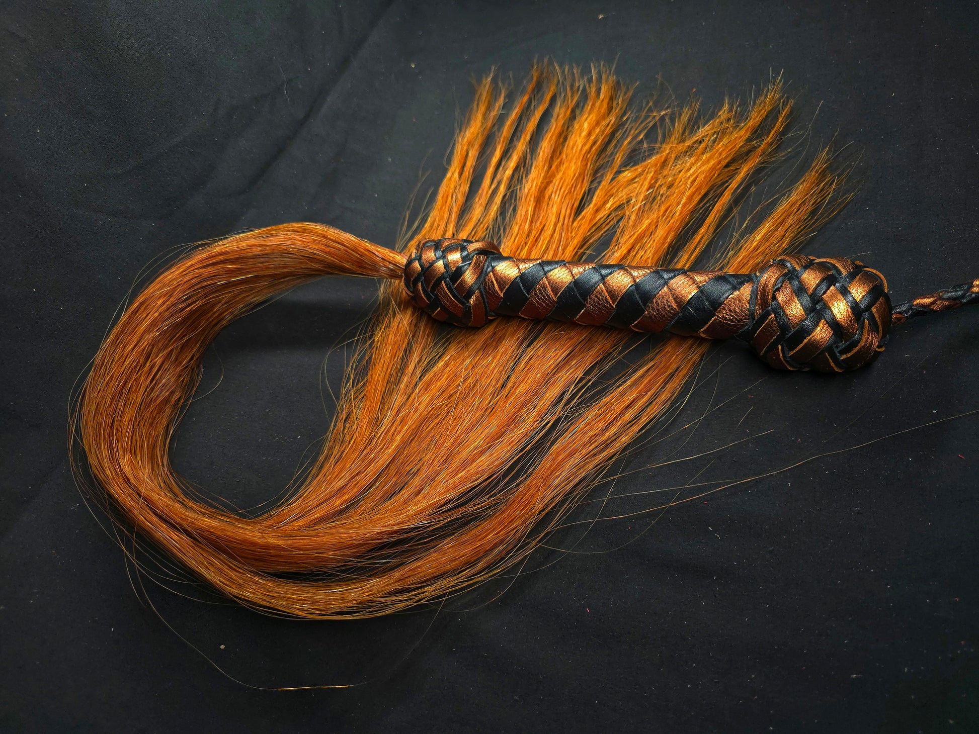 If you've never experienced a horse hair flogger before you may be in for a surprise. It is light and fast but it has a cutting sting that builds over time. It leaves tiny welts on the skin that can be activated with rubbing alcohol, salt, lemon juice, etc. It is also a great choice for those moments in a scene where you don't want deep impact but want painful surface sensation.
