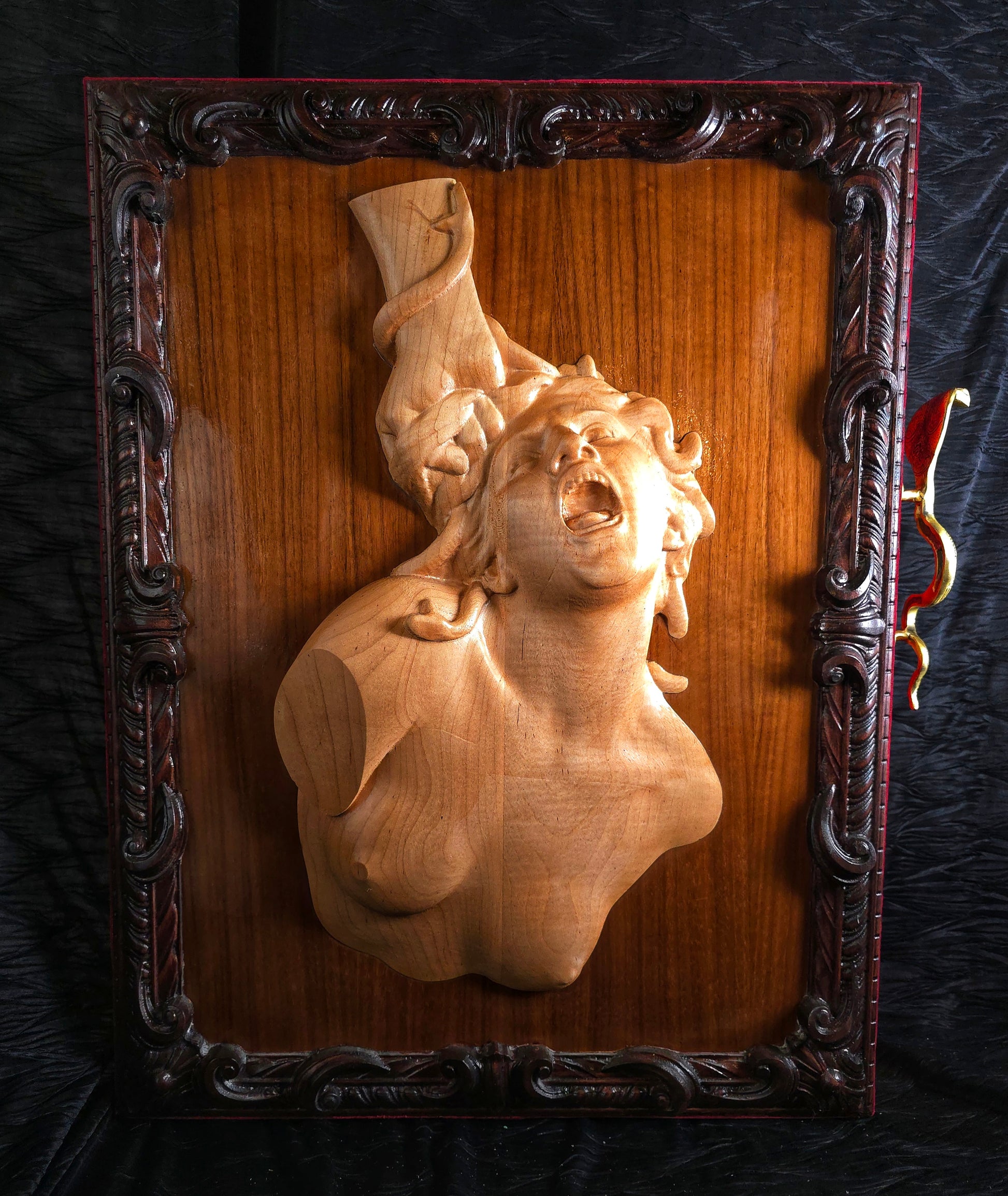 Medusa I is a toy cabinet. The bust image is taken from a statue of Perseus slaying Medusa. Rather than going with the common images of him holding the already severed head, I decided to go with one where she is still alive and fighting. Why? Because vibes.