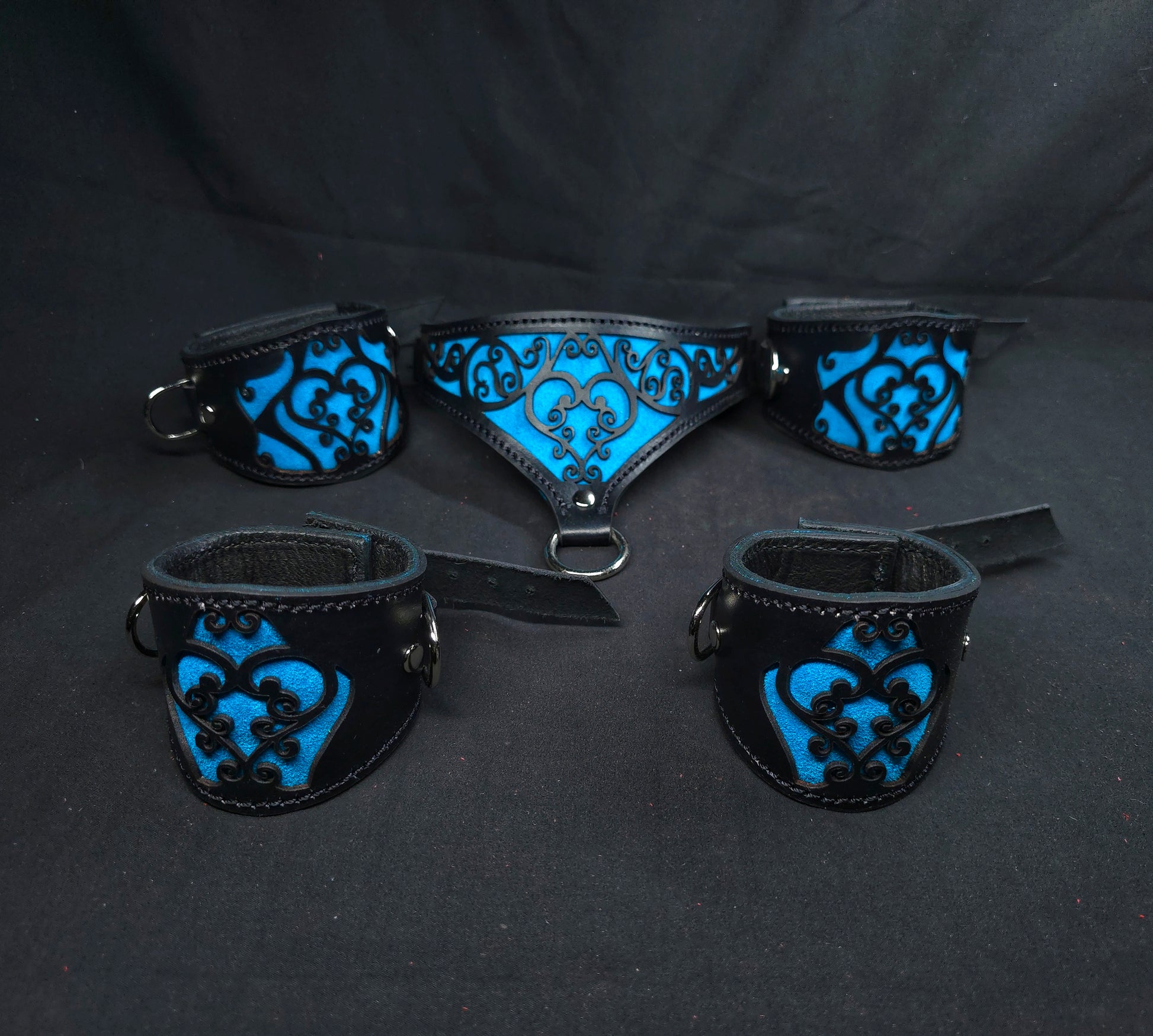 The Leather Heart Collar, wrist and ankle cuffs- Custom