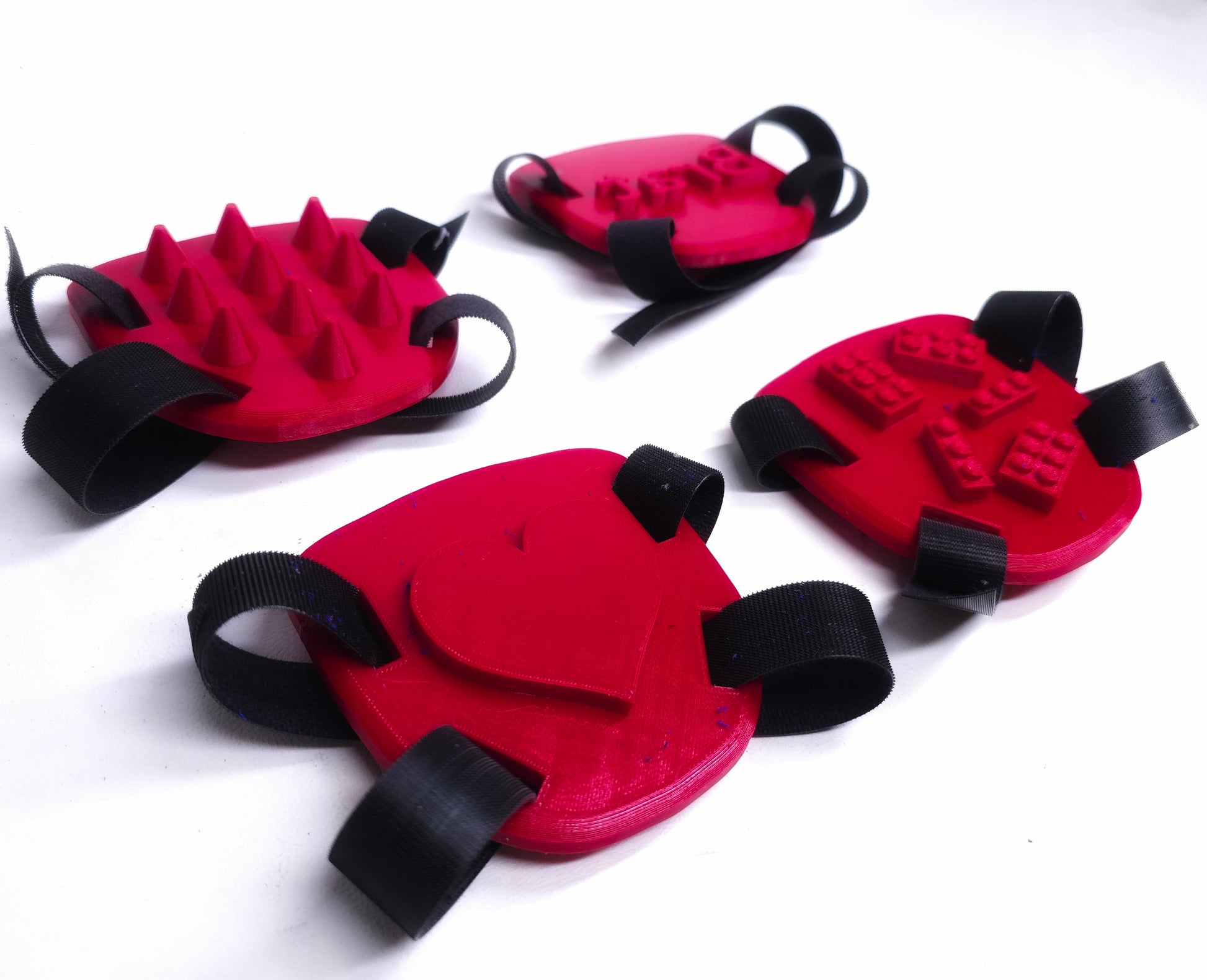 Little helpers for tops who are putting in the work! These strap to your hand to give a little assistance and vary the sensations of a good spanking for your partner. Theyre great for deep impact as they rest on the meat of the palm and can be driven as intensely or as gently as one would like.